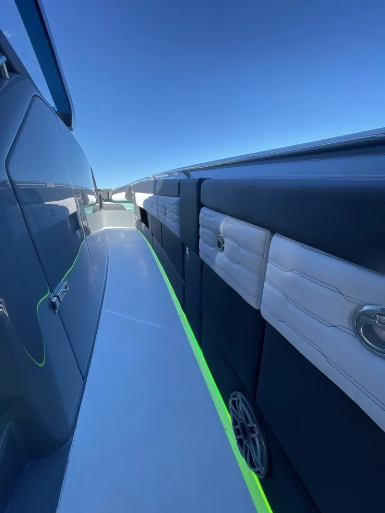 The innovative 41’ Nighthawk is designed to let you cruise the water in true Cigarette style. The Nighthawk offers the latest Cigarette Racing design, with its all new hard top. Loaded with state-of-the-art technology, the Nighthawk is as luxurious as it is thrilling to drive. Cigarette proves yet again that high performance and comfort do not have to be mutually exclusive. The 41’ Nighthawk provides direct, unadulterated, performance combined with comfort that is like no other center console.