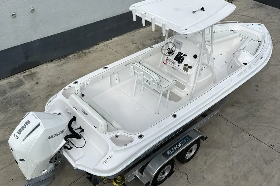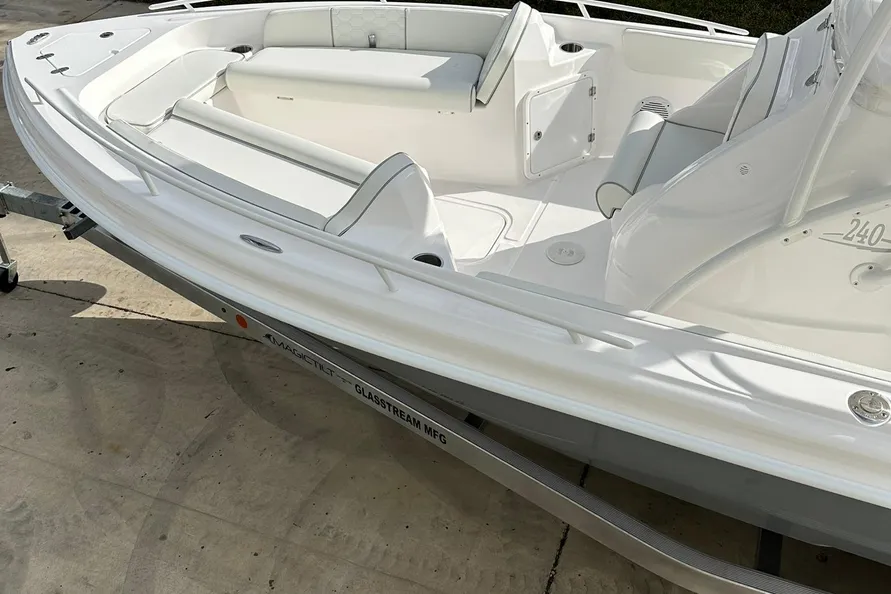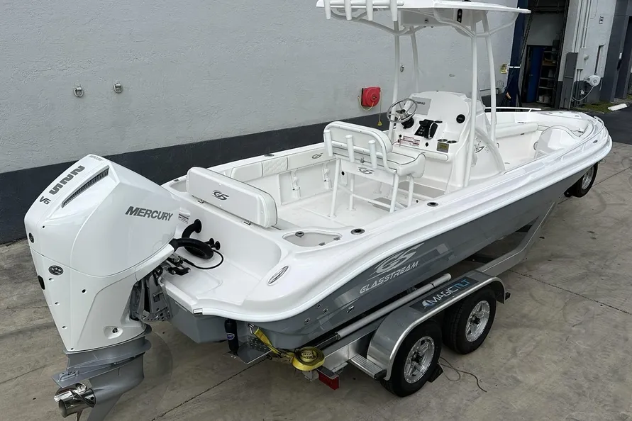 The all new Glasstream 240 CCX is the ultimate do-anything boat that will fit into most anybody’s budget. Whether you're fishing, cruising with family, or enjoying watersports, this 24-foot center console delivers impressive performance, comfort, and value — all powered by reliable twin Mercury outboards.